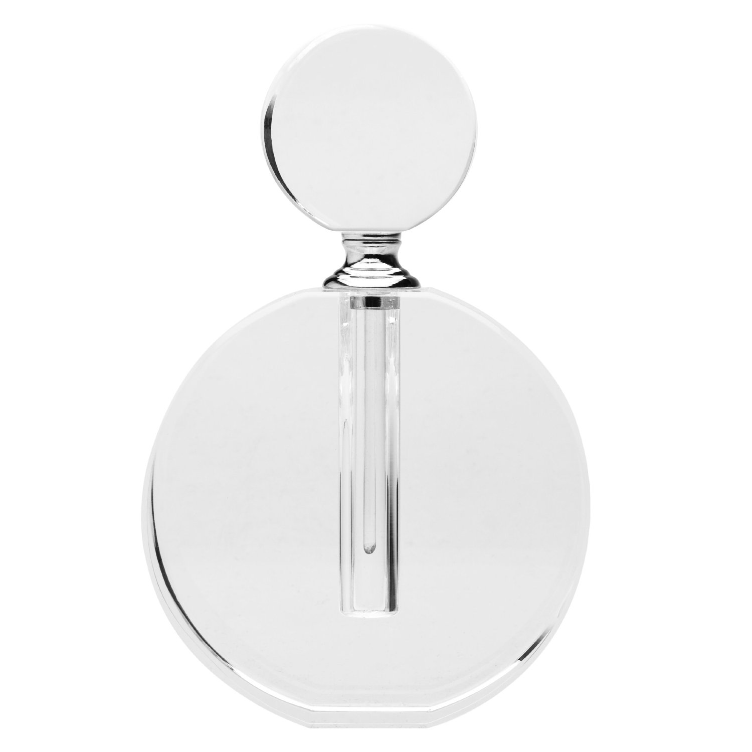 The heavy glass bottle has the appearance of crystal. It is a beautiful and reusable perfume bottle to display any of your favorite colognes or perfumes. The top screws off gently and has a perfume dipper attached that slides into a small opening to keep your favorite perfume in. It makes a wonderful gift for the special person in your life!